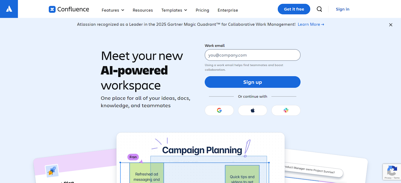 Teams on Premium and above also get Company Hub, an intranet-style landing page for org-wide resources and announcements that gives Confluence some reach beyond individual functional areas.