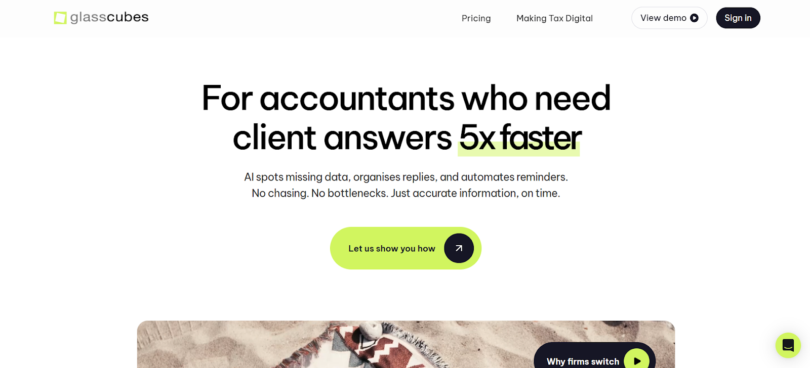 Glasscubes is built for accounting firms that need a more reliable way to collect information from clients, especially during high-volume periods like tax season, audits, and year-end reporting. It’s most often used when email-based requests become hard to track, and slow client responses start to delay delivery.