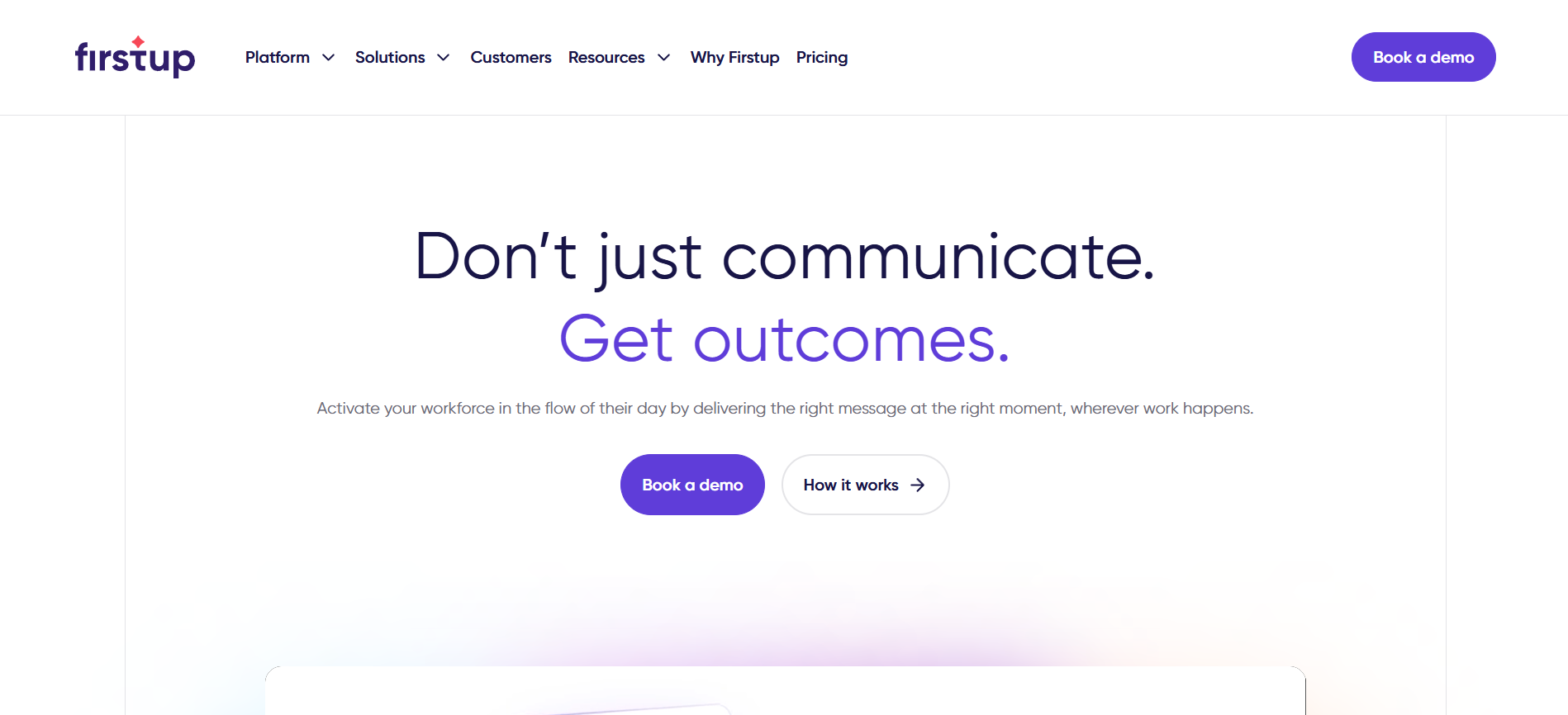 Firstup is an enterprise communications platform for large organizations that need to send targeted versions of messages to specific employee segments, deliver across multiple channels, and automate follow-ups to non-responders. It's most common in companies with frontline populations where email alone won't reach everyone, and where comms teams plan multi-step campaigns—like a benefits enrollment push with reminders leading up to the deadline—rather than sending one-off announcements as issues come up.